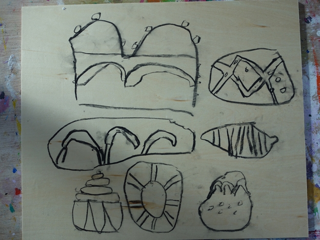 おいしそうなパンのレリーフを粘土でつくりました子ども達のつくる形、色、どの子の作品も素敵でした。デッサンして、成形して、白ペンキを塗って、絵の具を着色。